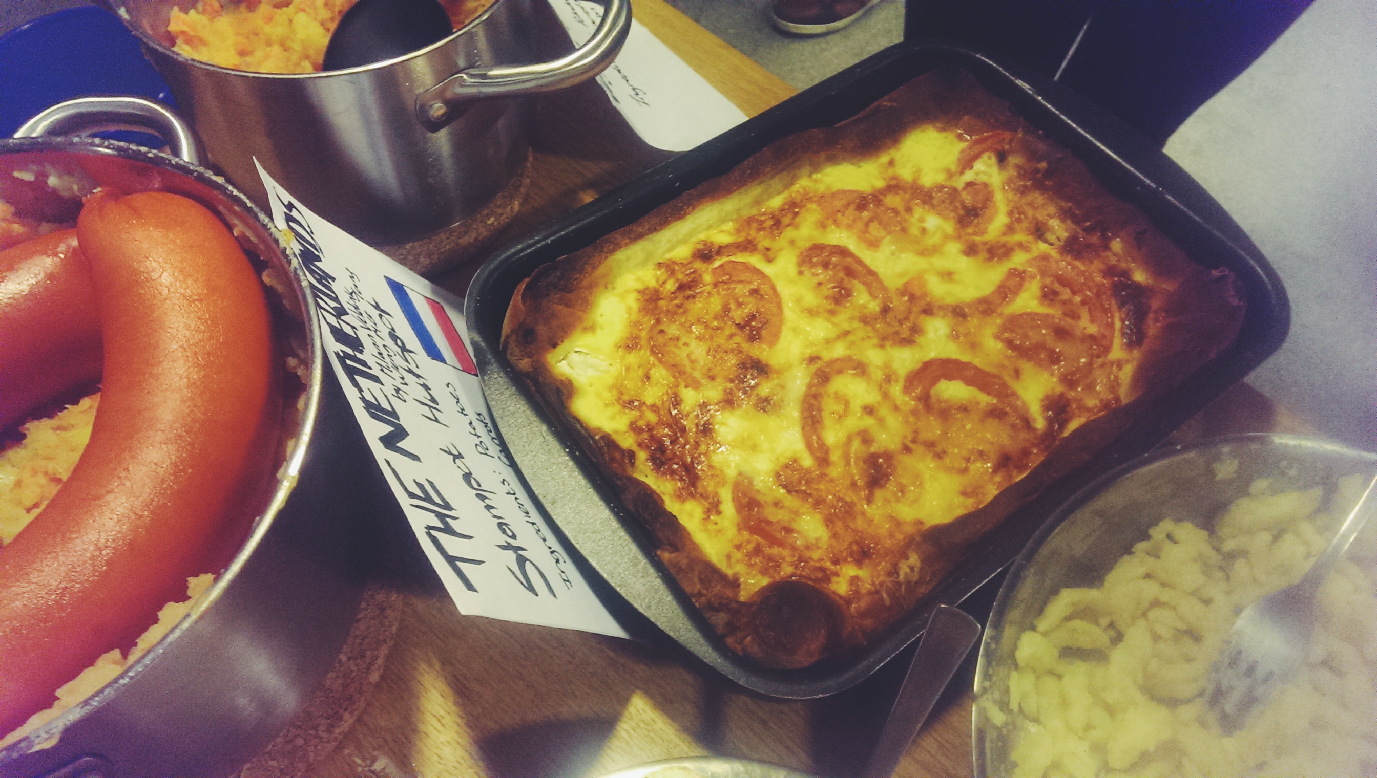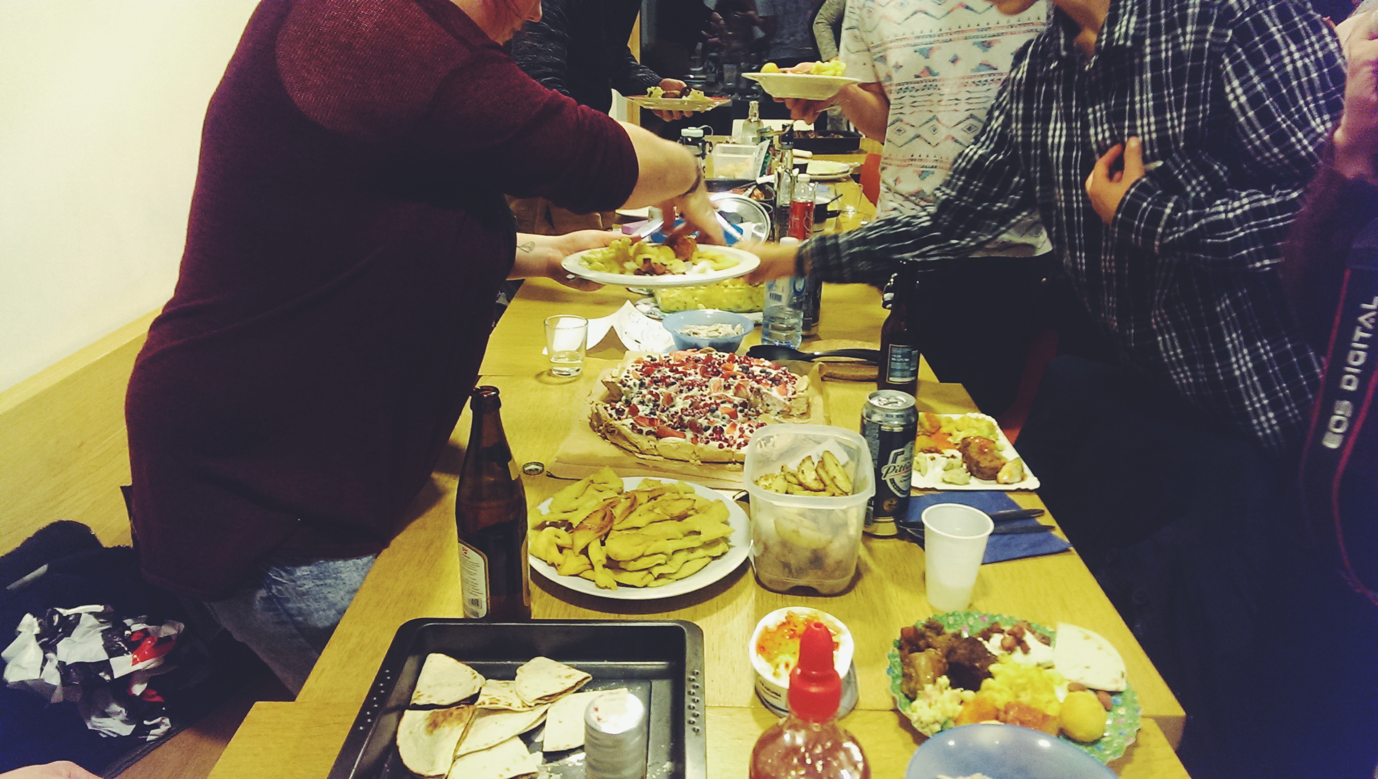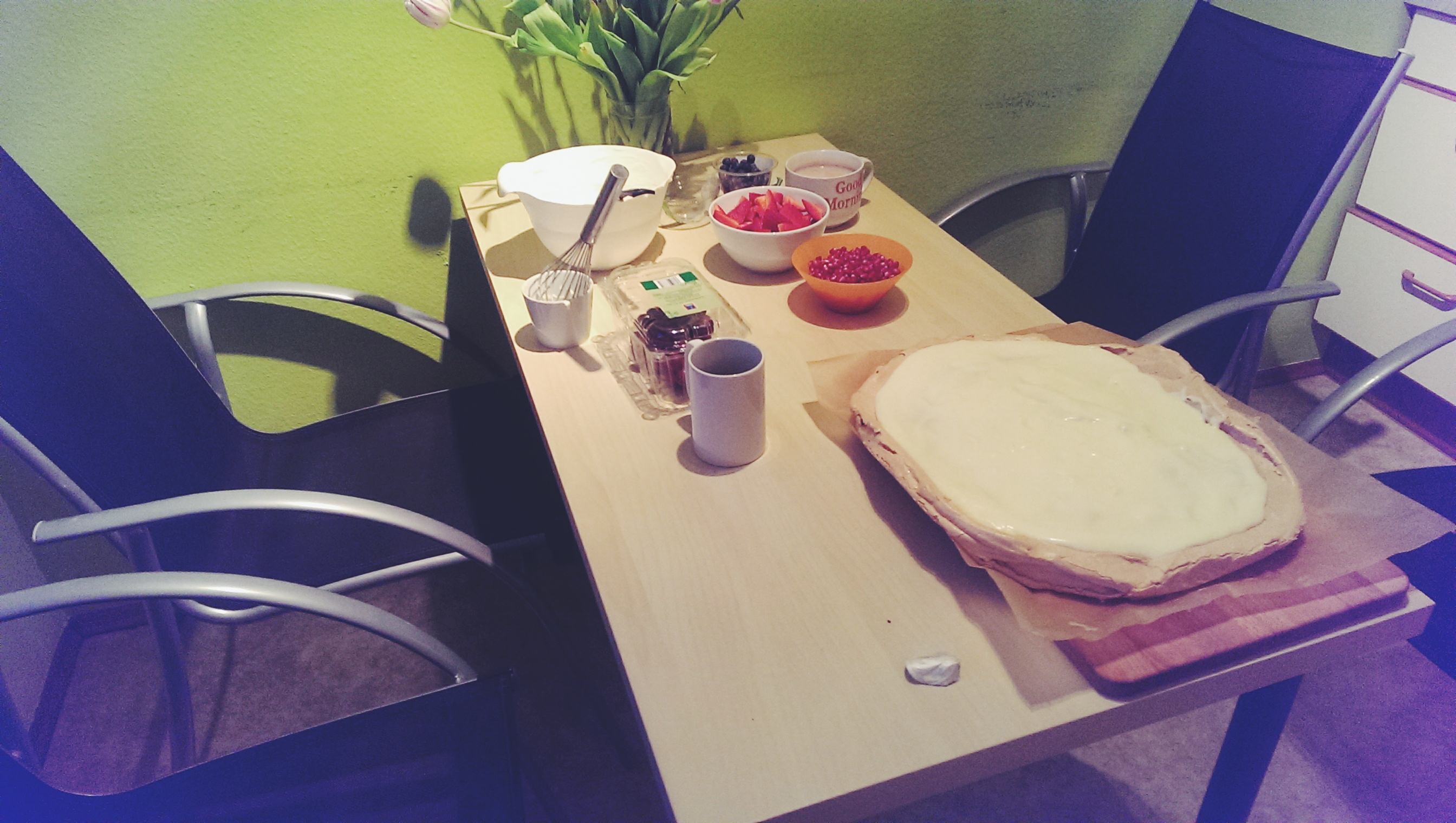 Wednesday was another uni day. I had Media Distribution in the morning (where I learnt the assessments/examinations have been replaced with just pure attendance yay!) Another creative writing lesson in the afternoon. After uni I walked to Maddie’s house (as soon as the snow started to really flipping pour down) to bake a pavlova for our pot luck dinner that night. It had been organised that we’d go to one of the other exchange students colleges and everyone would bring a dinner from their country. Oh my gosh – it was phenomenal. There were dishes from Chile, Costa Rica, Korea, Poland (and home made 60% vodka), Slovakia, France, Mexico, Finland, Netherlands, Turkey, the States and Belgium (well beer as opposed to food) to name a few. As I’ve already mentioned there are some serious cooks in our dorm which led to some extreme over indulgence particularly on some Finnish chocolate biscuit slice and some homemade French apple tarte tartin. Also tried mac and cheese for the first time! Our pav went down a treat and looked great despite having to walk with it for 20 minutes balancing on some cardboard (thankfully the snow held off).