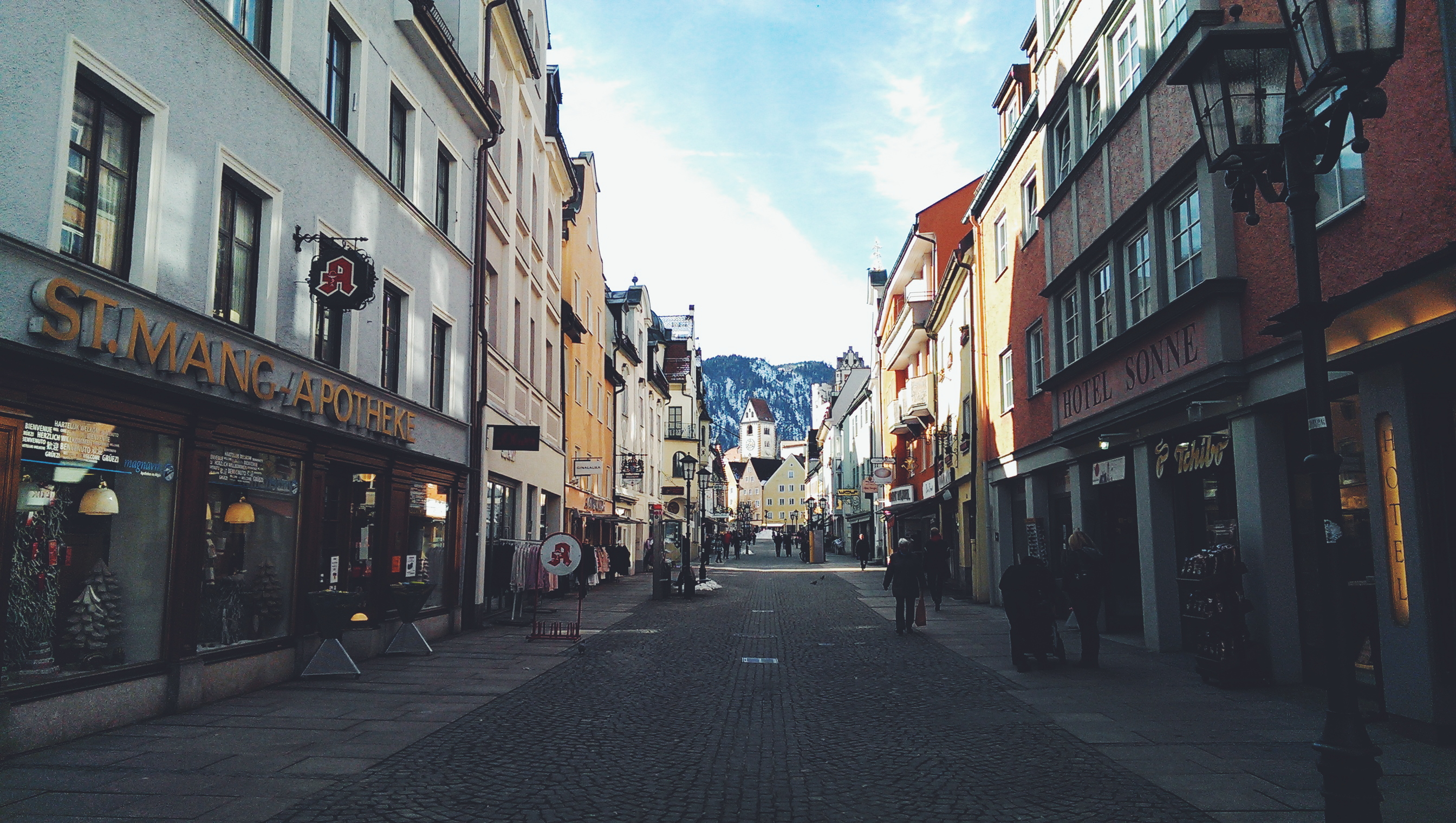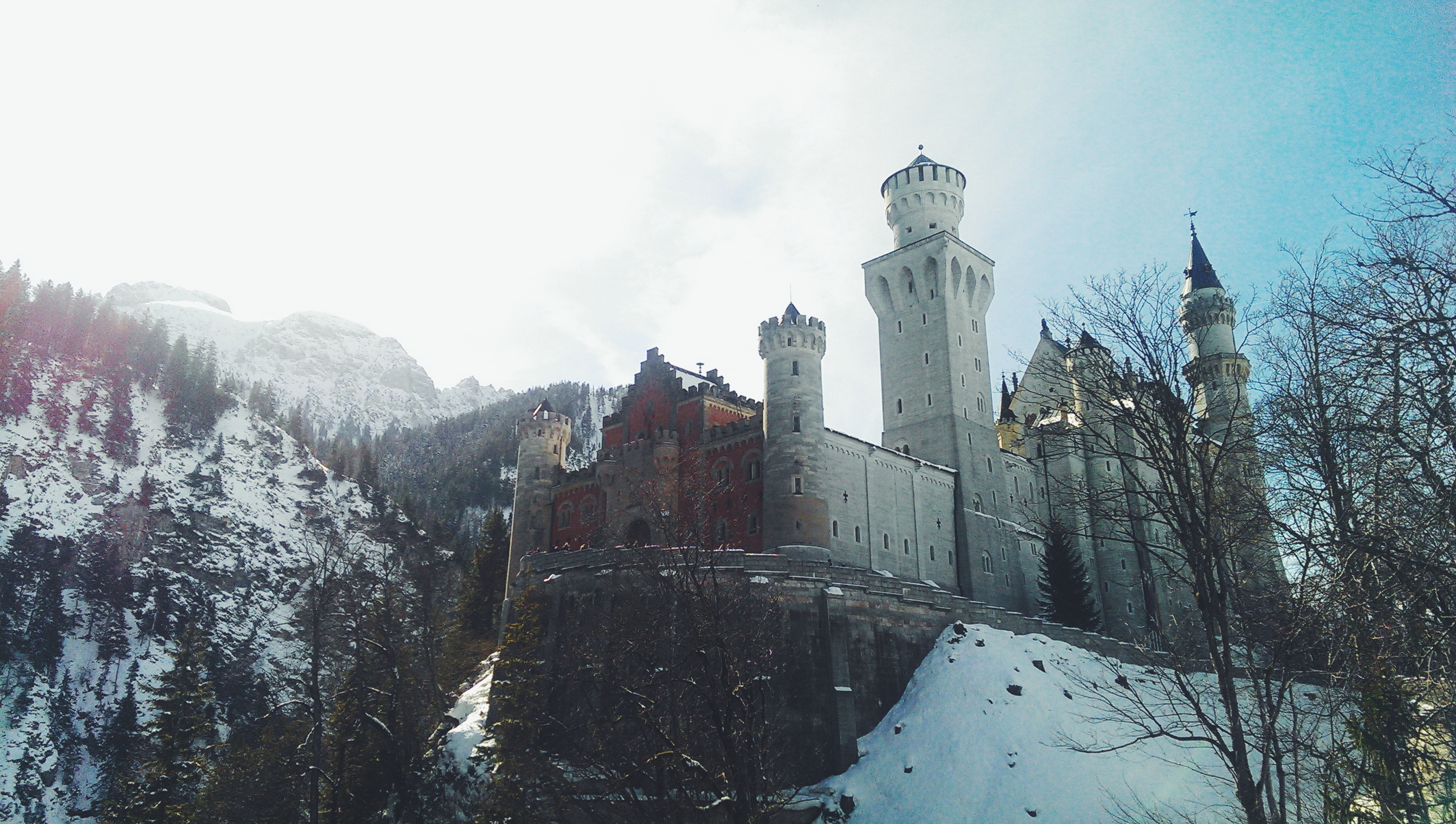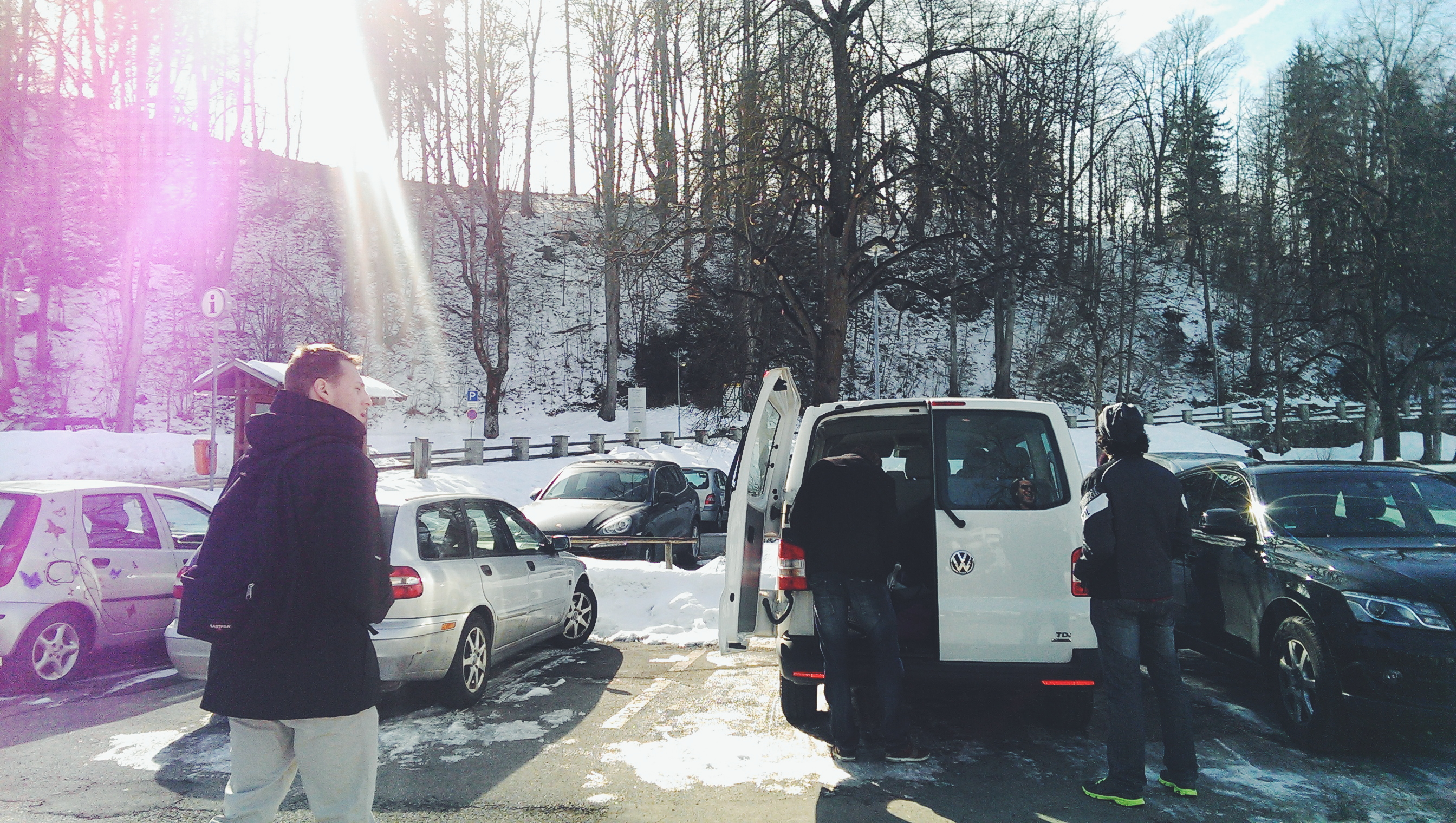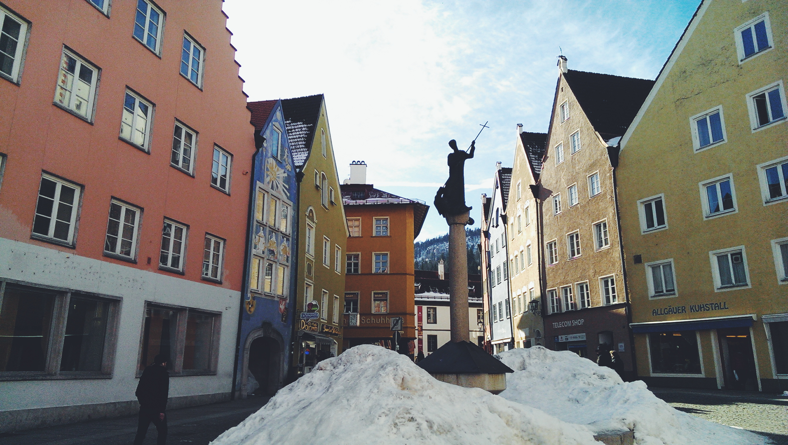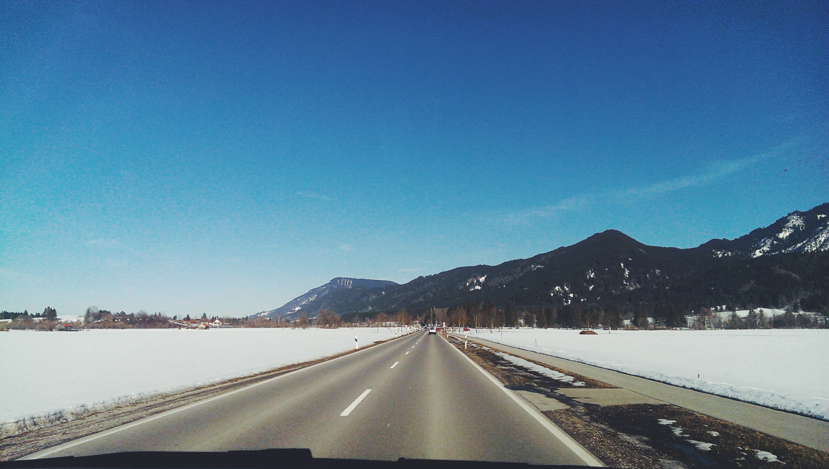 Saturday morning woke up early and chaotically packed for the weekend. We’d planned to leave in our 9 seater white VW van at 7:30am. We departed at about 8 and headed for Füssen – a small town in the south of Germany, spirits high and the volume of Bon Jovi even higher. The colours and mountains were insane, picturesque.