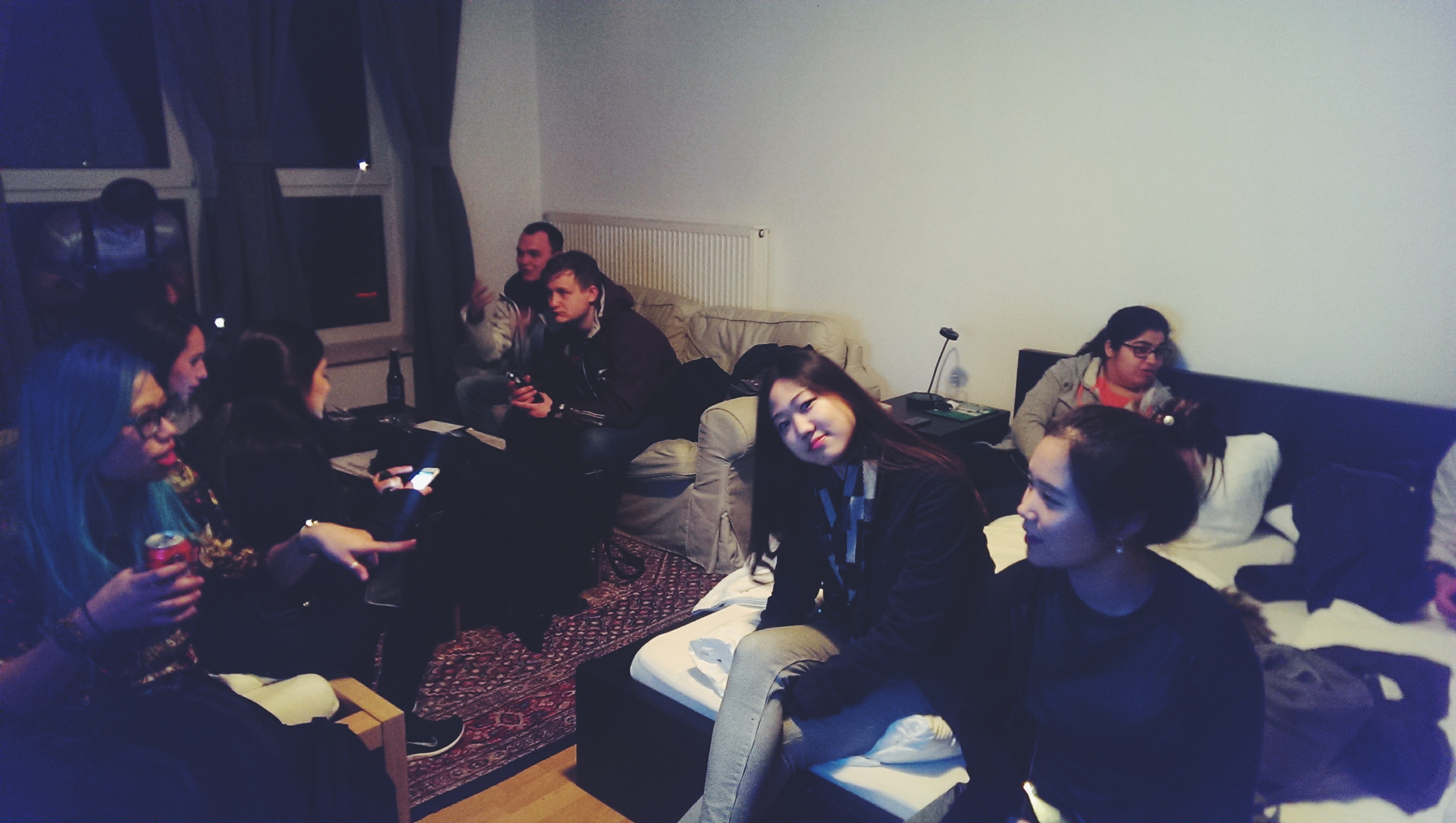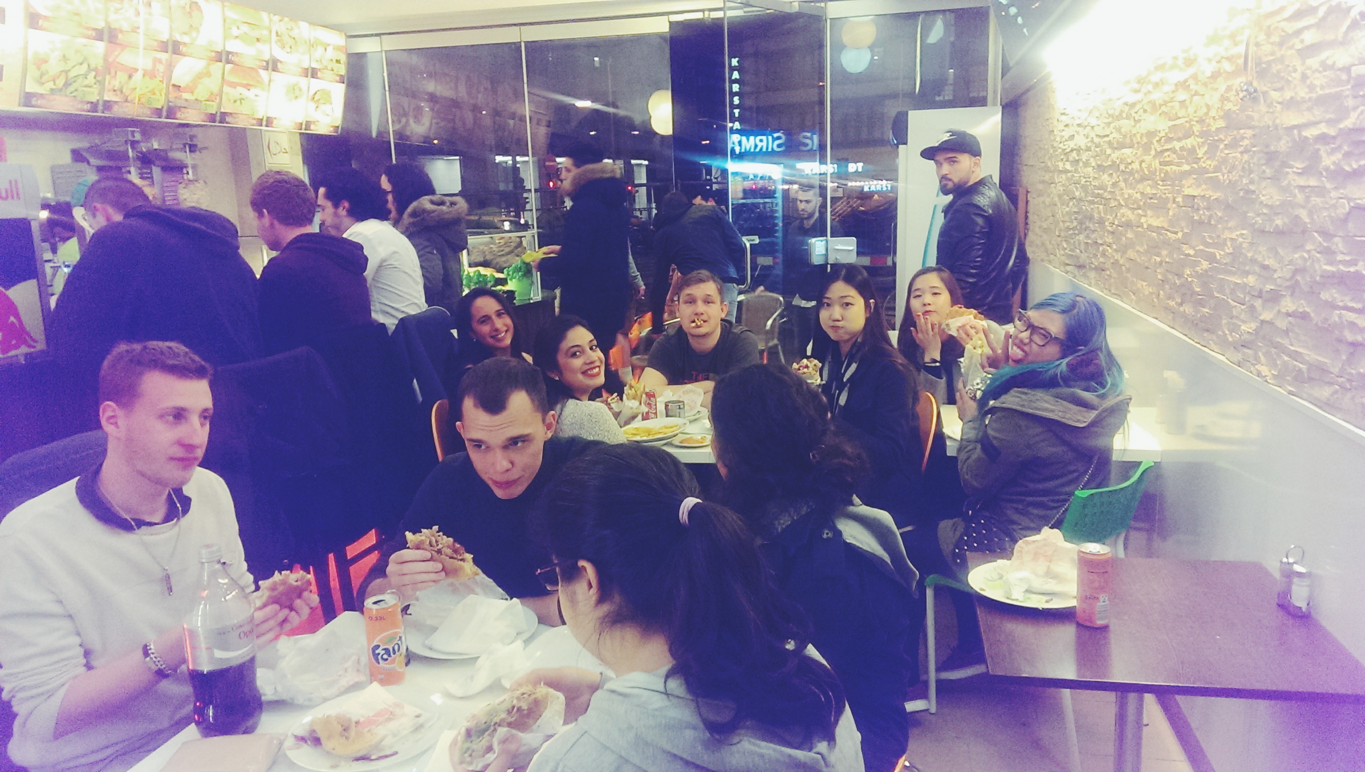 After a significantly longer time at the castle than anticipated, we went onto Munich where we arrived at ‘guenstigesschlafen24’ our apartments for the night. For some reason they’d split us up, so whilst a few of us were at number 21, the rest of us were a hefty walk away at 131. Despite that, the places were nice particularly for their cheap rate – Isabella, Nevia (Chile), Alejandra (Mexico), Weng Mee (Netherlands) and I in a room. Exhausted, we got ready to go out, chowed down some Ritter Sport chocolate and wine, and in 20 mins met the boys back at their place, before heading to the Bahn and catching the train into the centre. Here we got an impulsive ‘Döner kebap’ a much needed energy booster after an unsuccessful attempt of trying to find the other group. Cheap meat and hot bread in our stomachs, we continued on, having heard news that the others were at Bar 77. Cutting the story short – we searched for about 2 hours, some of us (or one of us) shoeless, cold and asking every German passer by if they knew Bar 77, we finally found someone who said they did. They pointed to the street that it was on, where we arrived at number 77: an Italian restaurant. Laughably annoying. We ended up finding them at a different club where we hung out for a while then made the commute home (where we lost our token blue-haired Dutch friend).