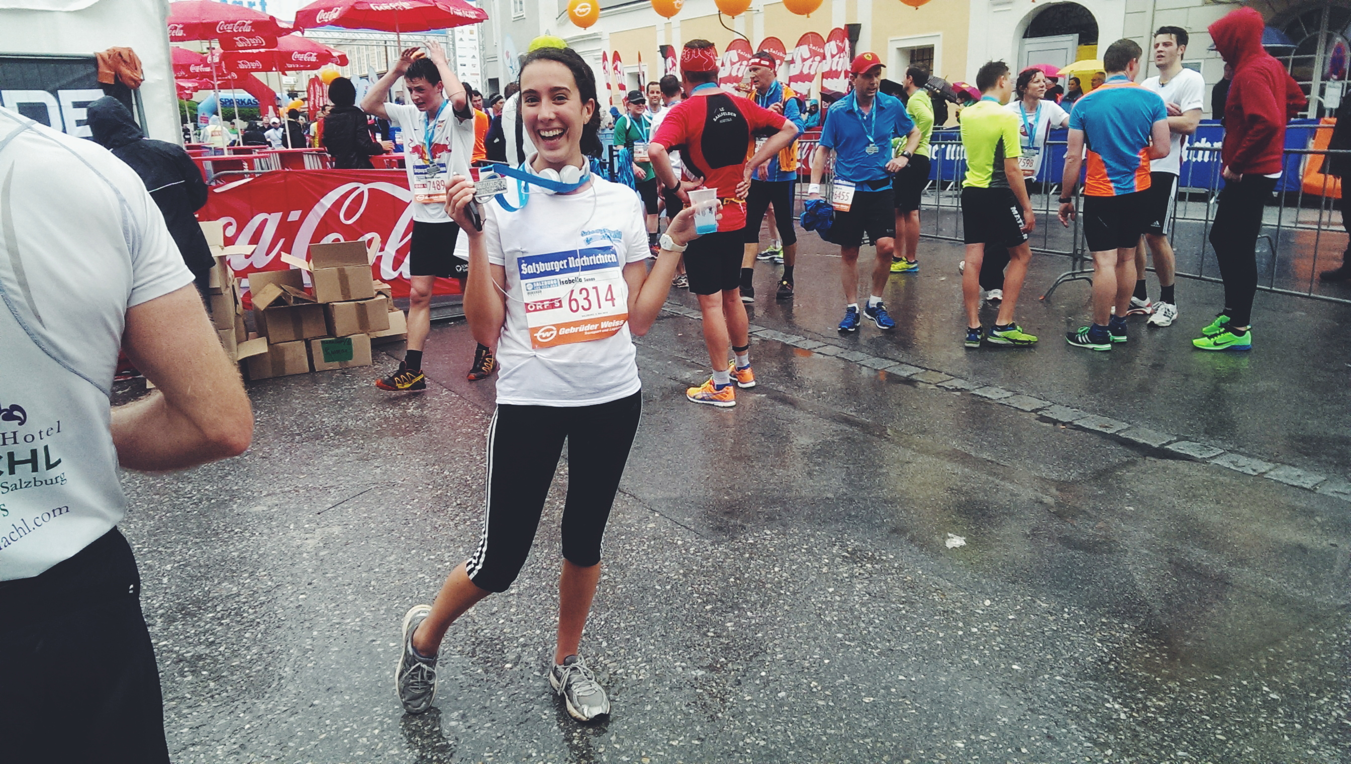 Race day came and knowing that the run started quite a bit away from our hostel (5km to be exact) we had looked into getting a bus there and were told that a shuttle would be running. Anyway, we got up very early on Sunday, greeted the pouring Salzburg skies and checked out, jogging about a kilometre to where we knew the bus would be departing from. Arriving there, in our t-shirts and shorts, sodden and obviously tourists we spotted no bus. Intimidated by those who were obviously looking down on us, equipped with skins/trackpants/beanies/dri-fits, we didn’t feel comfortable asking. Finally though as the time drew near to the start of the race and hypothermia started to settle in we managed to query as to where this bus actually was. Turns out ‘shuttle’ didn’t actually refer to a vehicle but rather a group that would run to the start line (a further 4km away). We jumped on the back of the last group as an older lady ran over to us with ponchos obviously wary of the fact we were about to die from cold and Isabella’s white shirt was becoming increasingly more see-through.