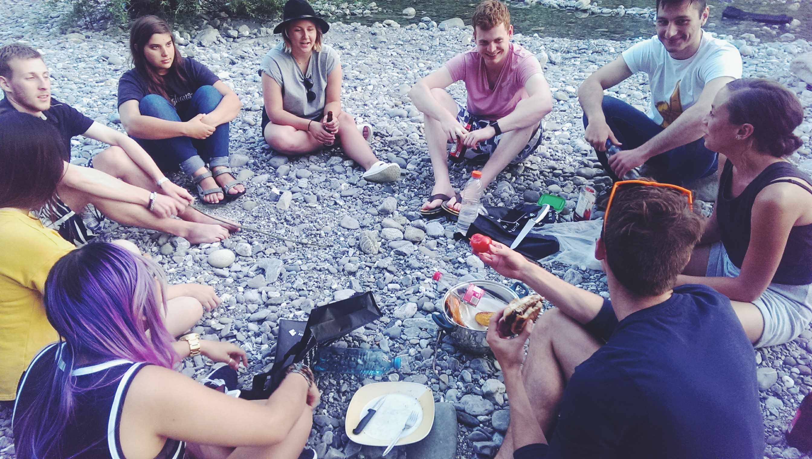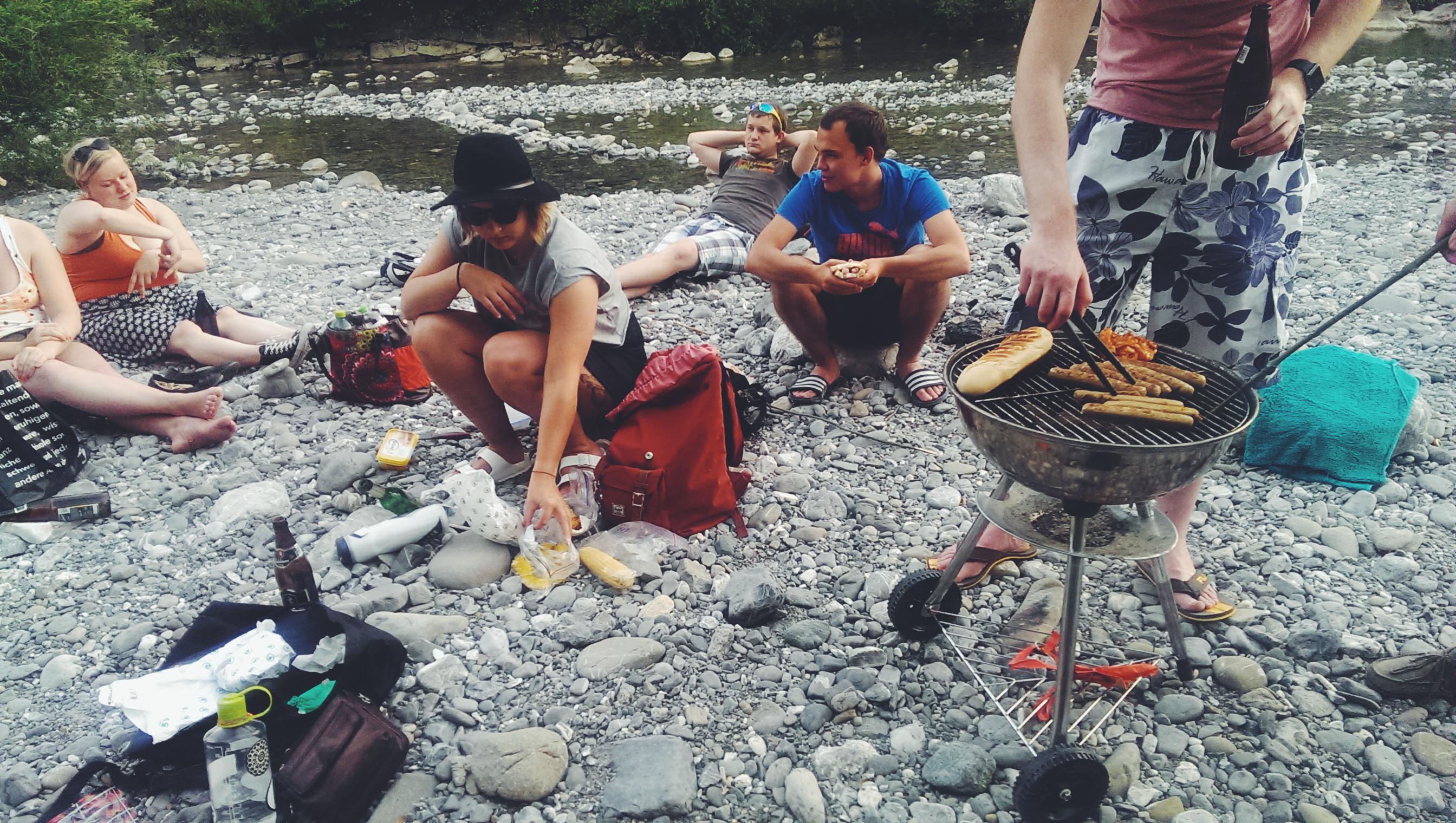 The bus trip back was significantly more dangerous than the hike itself. The bus was full to the absolute brim with people because it was one of the only ones coming back from Ebnit in the countryside. We were standing right up against the windshield which was one of the scariest things I’ve ever experienced. Essentially, we were going down an 18 degree slope in this bus with about 30 too many people around windy hairpin roads similar to Galston Gorge. There were massive drops on either side. Cars would meet us head to head and the vehicles would have to shimmy around each other often resulting in one wheel of the bus toeing the edge. Additionally, the bus driver did not seem the slightest bit phased. He was communicating energetically with one of the passengers, hand gestures and all which meant his hands were not always on the wheel. We arrived back in Dornbirn in time for a BBQ organised by the river. We swung past home to get sausages and the lemon tart from the morning (which Isabella accidentally dropped on the ground very very laughably).