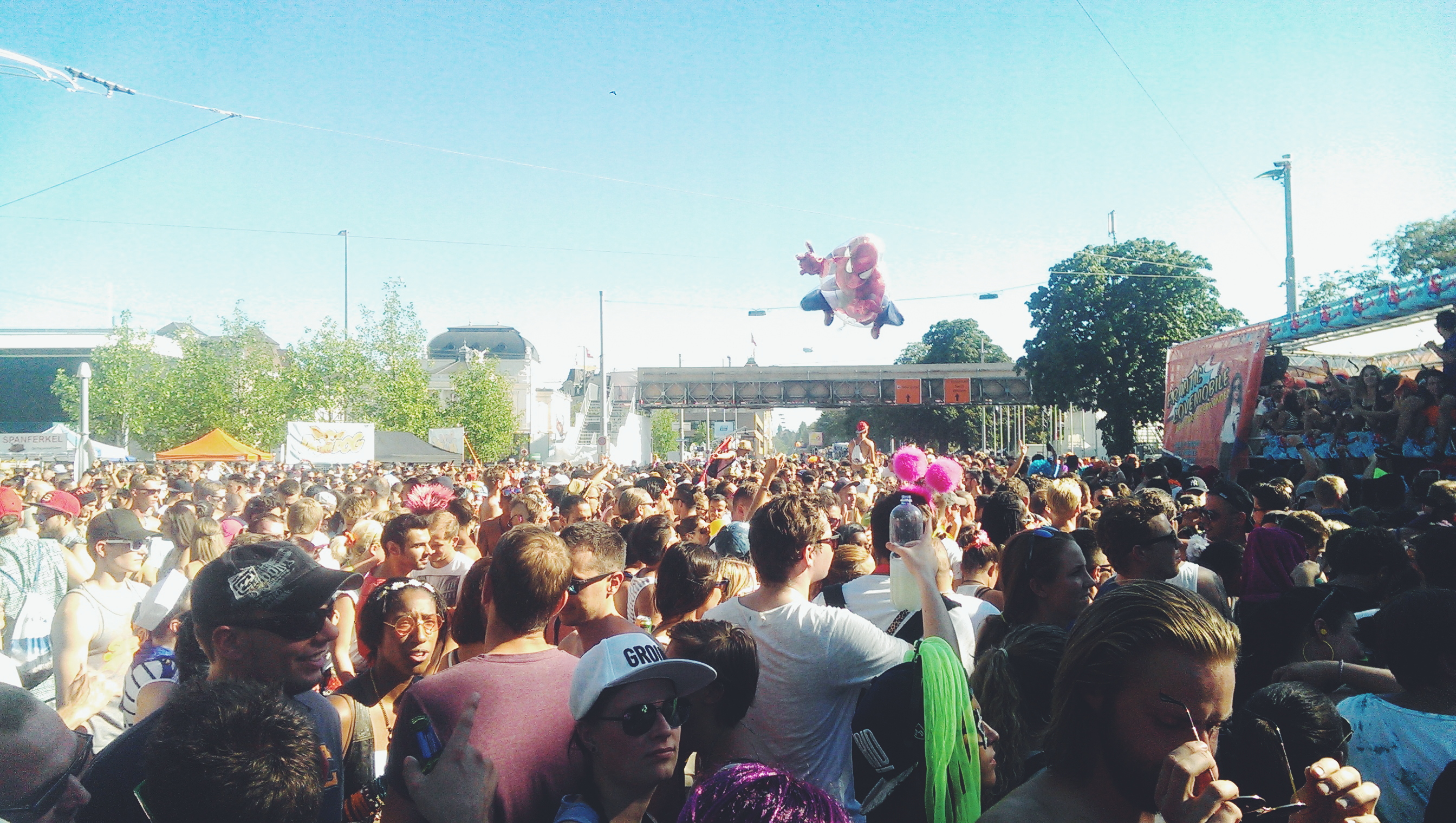 Okay this is chronologically all over the place but back to Saturday. Congratulations if you’ve followed til now. Saturday morning post International Party (tough), Davide day and I caught a VERY early morning train to Bregenz to get a car share ride to Zurich. There, was the annual street parade, the largest techno music festival in Europe hosting 1 million people for the day. I’ve been to Zurich before but never really spent the day there. It is BEAUTIFUL but so obviously expensive. Everything just seems perfect from the pristine streets to the swans on the lake. We arrived at about 8:15 and made our way down Bahnhofstrasse, one of the main streets. Davide told me that when his mother was younger, it used to go for one million euros per square metre on that street. We walked around a bit, went for an impulsive swim in the lake to combat the 32 degree heat, napped in a park and then watched the cleanest city I’ve ever been to get absolutely destroyed.