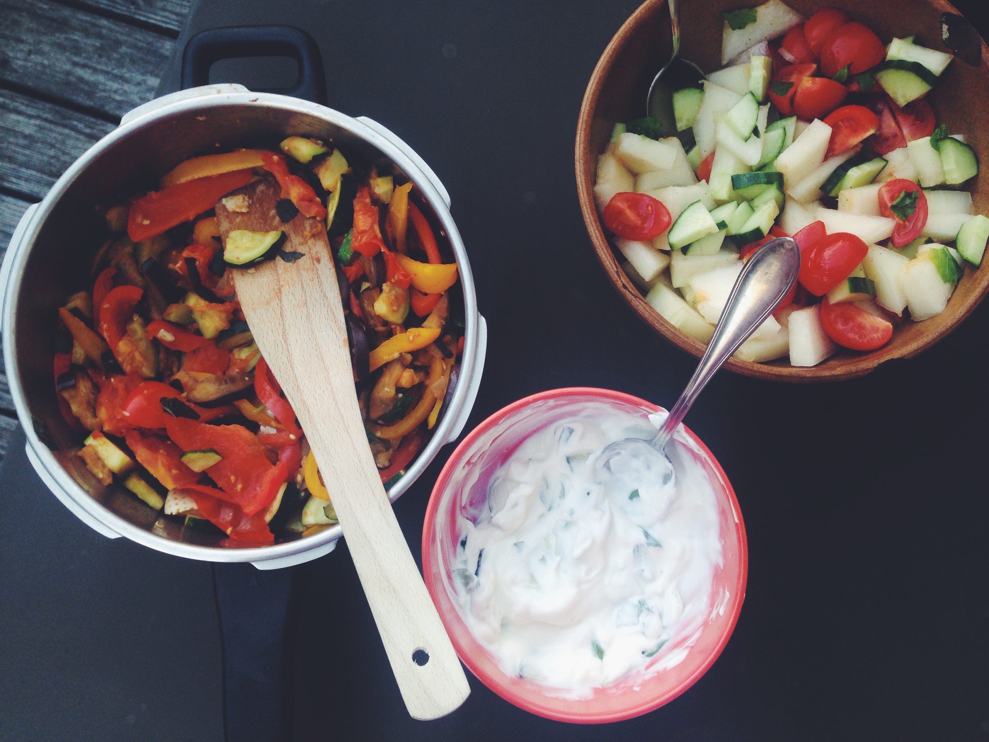 Maddy came over one night and we sat on the balcony and ate roast vegetables. Then we flew the drone.